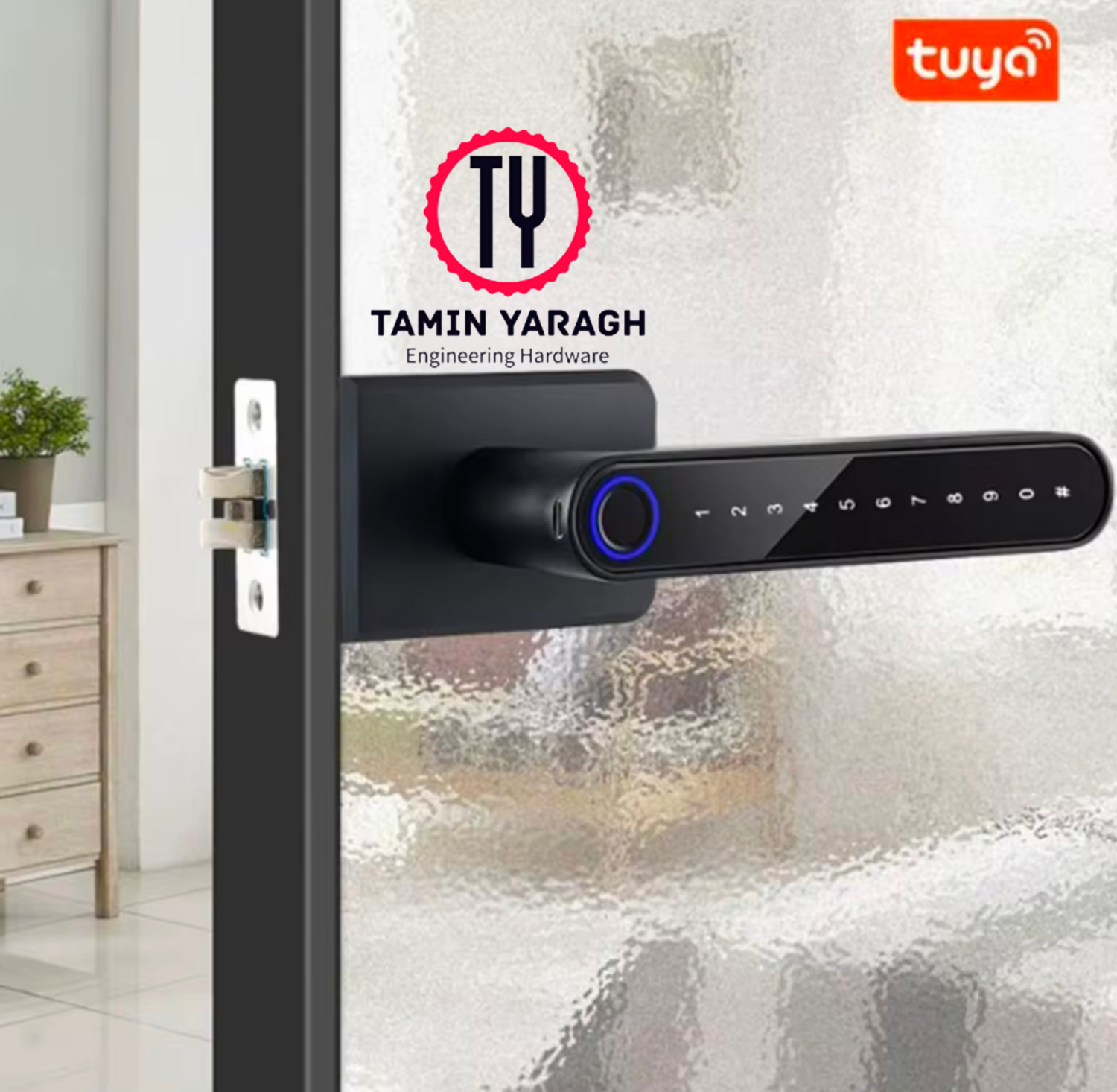 دستگیره هوشمند پارتیشنی مینیمال ( درب شیشه فریم دار) ریموت دار